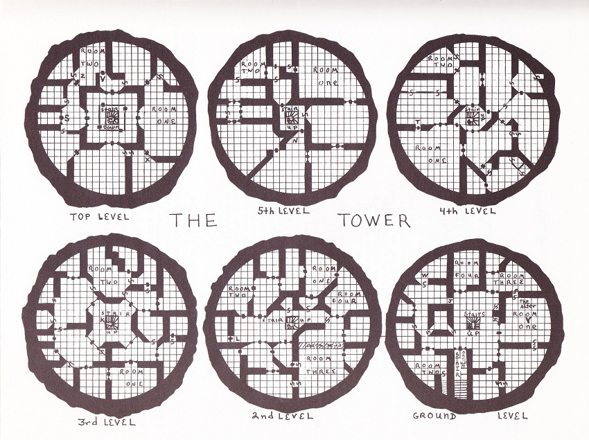 If the scale is 1 sq. = 5 ft., that tower is a bit broader than 90 ft. in diameter, but it does show what can be done with a round tower. One note: the interior walls of that tower are not realistic (somebody has been drawing too many dungeon maps ). The interior of a tower will be evenly supported by wooden beams or stone pillars at the base, and wooden beams/pillars on the upper levels. Consequently, there would be no reason for massively thick walls anywhere, when wood/stone pillars for support would suffice. What those unnecessarily thick walls could really be hiding are secret corridors a full 3 ft. wide throughout for servants (or spies) to move about!